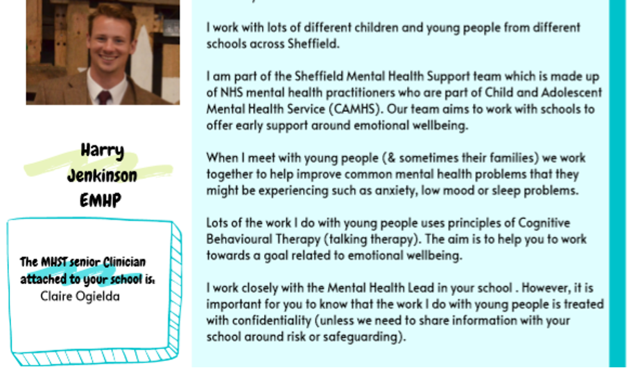 Healthy Minds is a school-based project which aims to support the emotional health and wellbeing of children and young people. It puts emotional resilience at the heart of children’s health and wellbeing and recognises its impact on their learning, attainment, behaviour and future employability. We are currently hosting Harry, who is a Mental Health Practitioner who works one on one with children who have specific needs.